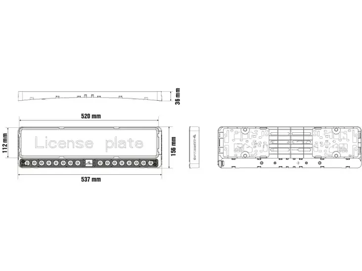 Mitat: 537 x 156 x 36 mm (Suunniteltu pitkälle EU-kilvelle)