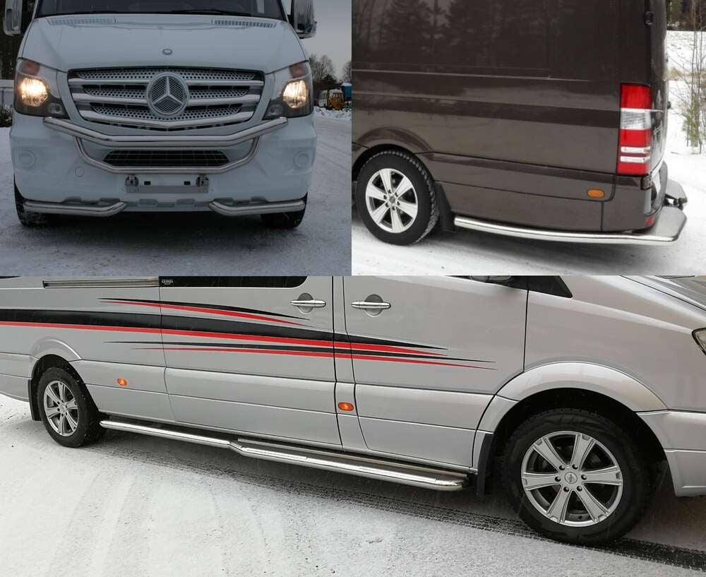 Päivitä Sprinterisi kerralla ammattitasoiseksi ja näyttäväksi kokonaisuudeksi. Tämä Style-putkipaketti on suunniteltu Mercedes-Benz Sprinter (W906) -malleihin kuljettajalle, joka haluaa yhtenäisen, peilikirkkaan rosterilinjan keulasta perään asti. Paketti sisältää kaikki keskeisimmät ulkovarusteet, jotka parantavat auton ulkonäköä, suojaavat helmoja ja helpottavat käyttöä.